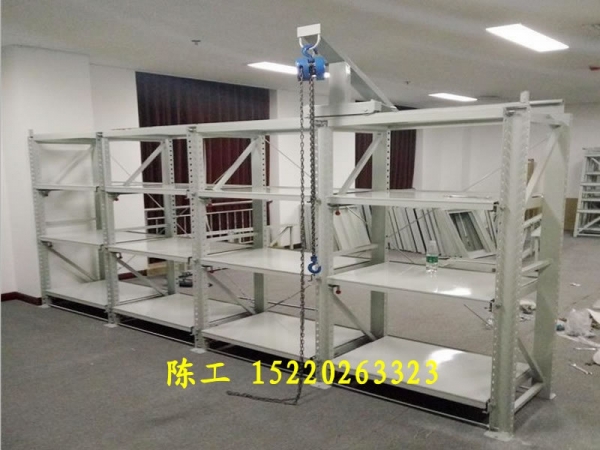 抽屜式模具架又稱模具貨架。主要用于存放各種模具物品;頂部可配置移動(dòng)葫蘆車(chē)(手拉或電動(dòng)),抽屜底部設(shè)有滾輪軌道,承載后依然能用很小的力自如地拉動(dòng),附加定位保險(xiǎn)裝置,安全可靠;根據(jù)承載能力可分為輕量型、中量型和重量型三種。操作輕便:采用軸承組合,滑動(dòng)平移并附有獨(dú)立吊模裝置,無(wú)需大型行車(chē)及叉車(chē)。