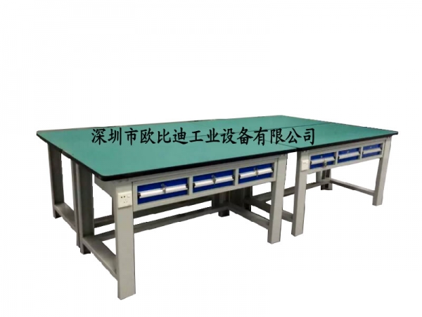 歐比迪鉗工桌技術(shù)參數(shù):1200*750/1500*750/1800*750/2000*1000*800MM:可按用戶(hù)要求定做其規(guī)格尺寸。桌面材質(zhì):臺(tái)面采用1.0/1.2/1.5/2.0/MM不銹鋼包30/47MM厚高密度板,根據(jù)用戶(hù)工作需求選擇不同桌面;工作臺(tái)桌面可選擇特殊成型高分子纖維板等不同材質(zhì)、不同厚度的基材,歐比迪基本桌面:高分子復(fù)合桌面、防火板桌面不銹鋼包面、櫸木桌面、橡木層壓板左面、防靜電桌面、電木板帖面等,鐵板合成面、不銹鋼包臺(tái)面、鋼板臺(tái)面、 鑄鐵臺(tái)面。詳情請(qǐng)參考?xì)W比迪工作桌選配表。歐比迪工作臺(tái)整體框架:采用優(yōu)質(zhì)鋼板2.0mm厚的專(zhuān)用模具及鯤扎工藝制作成型,桌腿截面100*50*2.0MM橫梁截面80*50*2.0MM,整體可承重3000KG,根據(jù)用戶(hù)的承載要求,可選擇不同形狀的桌腳。桌上配置:照明架/吊架/擱板/方孔掛板/百葉掛板/擋板/擱物架/動(dòng)力電源插座/電器盒/零件盒掛條等,滿(mǎn)足用戶(hù)不同的需求。詳情請(qǐng)參考工作桌掛板表。歐比迪鉗工桌表面處理:通過(guò)先進(jìn)的自動(dòng)化靜電噴涂工藝進(jìn)行表面處理。顏色自定。自定選配:桌下可選配抽屜、吊柜、落地柜、組合柜、單開(kāi)門(mén)柜、雙開(kāi)門(mén)柜,滿(mǎn)足用戶(hù)裝載物品的需求。可完全按照您所需工位非標(biāo)設(shè)計(jì)生產(chǎn)制造!各種類(lèi)型的工作桌均采用組合式設(shè)計(jì)、拆裝組合容易且穩(wěn)固、耐用。廣泛適用:模具廠,組裝廠,電子廠,機(jī)械廠,實(shí)驗(yàn)室,測(cè)試單位,食品廠,塑膠廠,鋼木等及其他類(lèi)型工廠使用。為鉗工、模具、裝配、包裝、檢測(cè)、維修等各種生產(chǎn)工作而專(zhuān)門(mén)設(shè)計(jì)。歐比迪供應(yīng)修模工作臺(tái)、模具修模工作臺(tái)、鋼板修模工作臺(tái)、鐵制修模工作臺(tái)、不銹鋼桌面修模工作臺(tái)、櫸木桌面修模工作臺(tái)、制模修模工作臺(tái)、重型修模工作臺(tái)、鉗工修模工作臺(tái)、定制修模工作臺(tái)