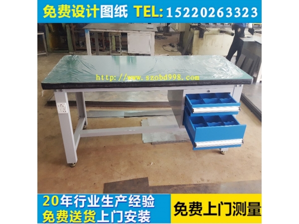 歐比迪鉗工桌技術(shù)參數(shù):1200*750/1500*750/1800*750/2000*1000*800MM:可按用戶要求定做其規(guī)格尺寸。桌面材質(zhì):臺(tái)面采用1.0/1.2/1.5/2.0/MM不銹鋼包30/47MM厚高密度板,根據(jù)用戶工作需求選擇不同桌面;工作臺(tái)桌面可選擇特殊成型高分子纖維板等不同材質(zhì)、不同厚度的基材,歐比迪基本桌面:高分子復(fù)合桌面、防火板桌面不銹鋼包面、櫸木桌面、橡木層壓板左面、防靜電桌面、電木板帖面等,鐵板合成面、不銹鋼包臺(tái)面、鋼板臺(tái)面、 鑄鐵臺(tái)面。詳情請(qǐng)參考?xì)W比迪工作桌選配表。歐比迪工作臺(tái)整體框架:采用優(yōu)質(zhì)鋼板2.0mm厚的專用模具及鯤扎工藝制作成型,桌腿截面100*50*2.0MM橫梁截面80*50*2.0MM,整體可承重3000KG,根據(jù)用戶的承載要求,可選擇不同形狀的桌腳。桌上配置:照明架/吊架/擱板/方孔掛板/百葉掛板/擋板/擱物架/動(dòng)力電源插座/電器盒/零件盒掛條等,滿足用戶不同的需求。詳情請(qǐng)參考工作桌掛板表。歐比迪鉗工桌表面處理:通過(guò)先進(jìn)的自動(dòng)化靜電噴涂工藝進(jìn)行表面處理。顏色自定。自定選配:桌下可選配抽屜、吊柜、落地柜、組合柜、單開(kāi)門柜、雙開(kāi)門柜,滿足用戶裝載物品的需求。可完全按照您所需工位非標(biāo)設(shè)計(jì)生產(chǎn)制造!各種類型的工作桌均采用組合式設(shè)計(jì)、拆裝組合容易且穩(wěn)固、耐用。廣泛適用:模具廠,組裝廠,電子廠,機(jī)械廠,實(shí)驗(yàn)室,測(cè)試單位,食品廠,塑膠廠,鋼木等及其他類型工廠使用。為鉗工、模具、裝配、包裝、檢測(cè)、維修等各種生產(chǎn)工作而專門設(shè)計(jì)。歐比迪供應(yīng)修模工作臺(tái)、模具修模工作臺(tái)、鋼板修模工作臺(tái)、鐵制修模工作臺(tái)、不銹鋼桌面修模工作臺(tái)、櫸木桌面修模工作臺(tái)、制模修模工作臺(tái)、重型修模工作臺(tái)、鉗工修模工作臺(tái)、定制修模工作臺(tái)