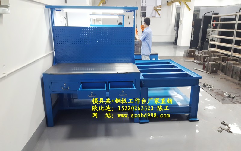 【桌上可配】:照明架、吊架、擱板、方孔掛板、百葉掛板、動(dòng)力電源插座、電器盒、零件盒掛條等,滿足用戶不同的需求。詳情請(qǐng)參考工作桌掛板表。鉗工模具臺(tái)、鉗工模具工作桌系列、東莞模具桌、廣州模具修模臺(tái)、重型模具工作臺(tái)